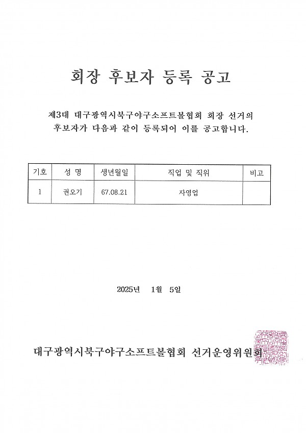 북구야구소프트볼협회 회장후보자 등록공고 페이지 정보 작성자 관리자 작성일25-01-05 20:04 조회293회 댓글0건 이전글 다음글 목록 본문 댓글목록 등록된 댓글이 없습니다. 이전글 다음글 목록