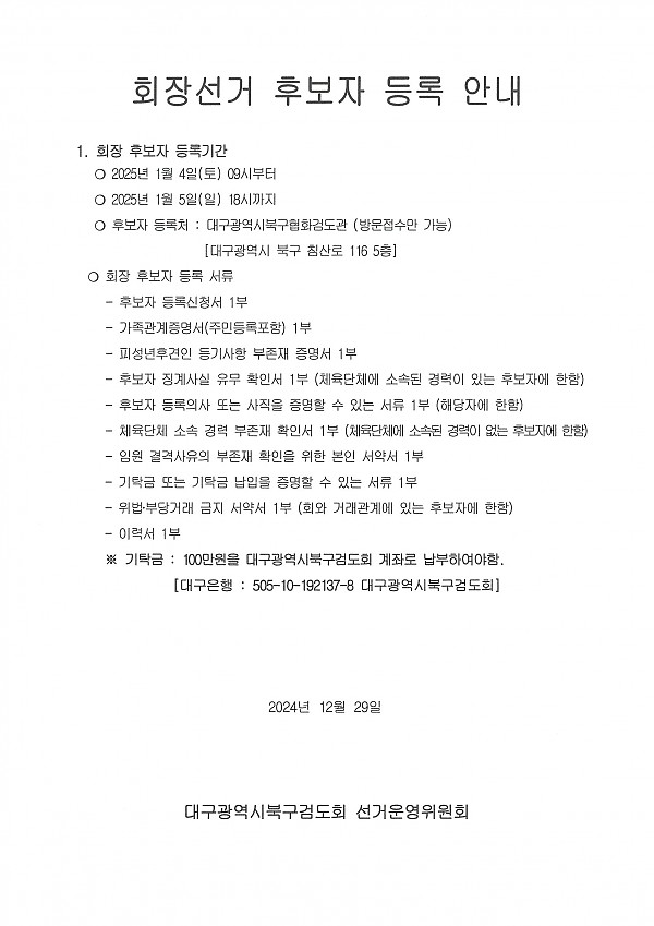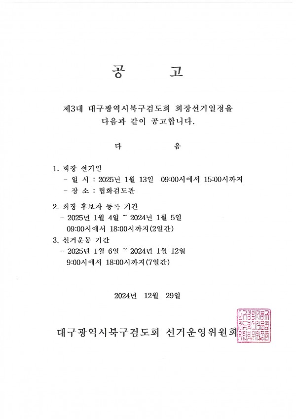 북구검도회 회장선거 일정 공고