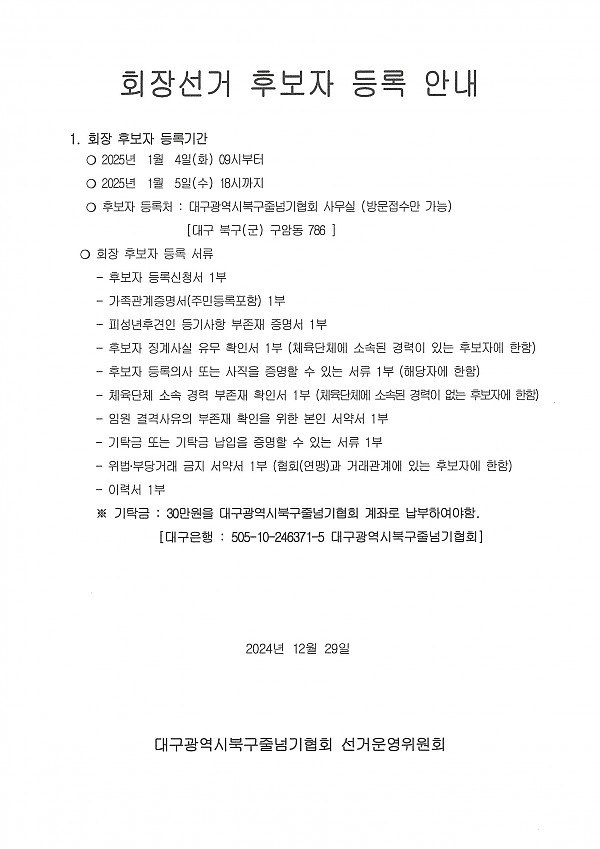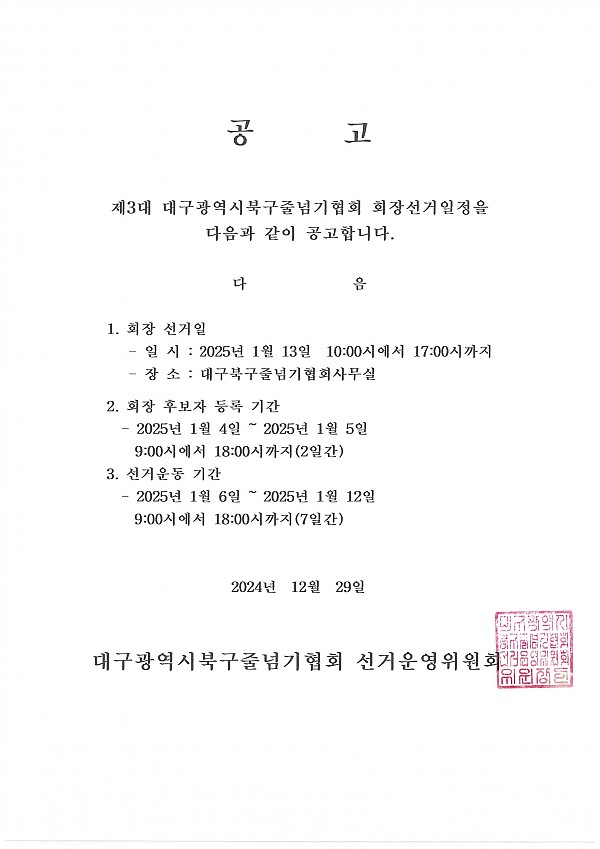 북구줄넘기협회 회장선거 일정 공고