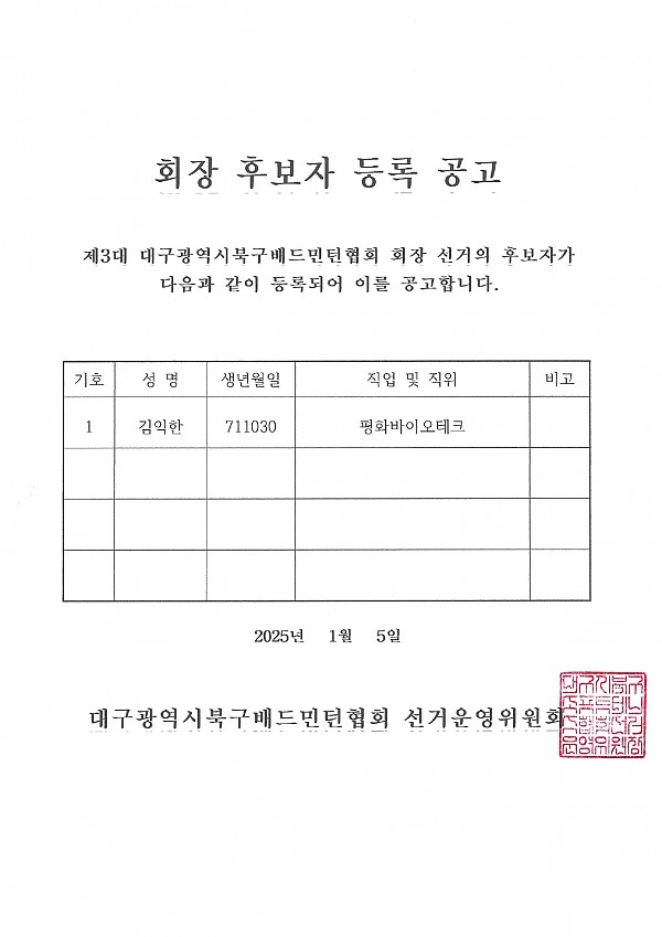 북구배드민턴협회 회장후보자 등록공고 페이지 정보 작성자 관리자 작성일25-01-05 20:31 조회313회 댓글0건 이전글 다음글 목록 본문 댓글목록 등록된 댓글이 없습니다. 이전글 다음글 목록